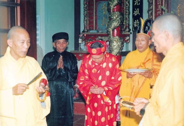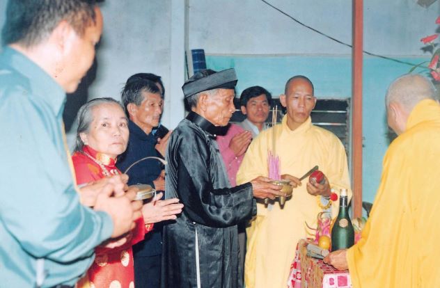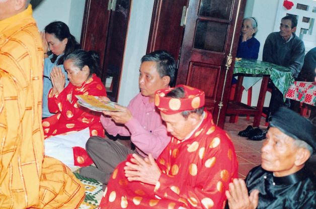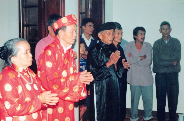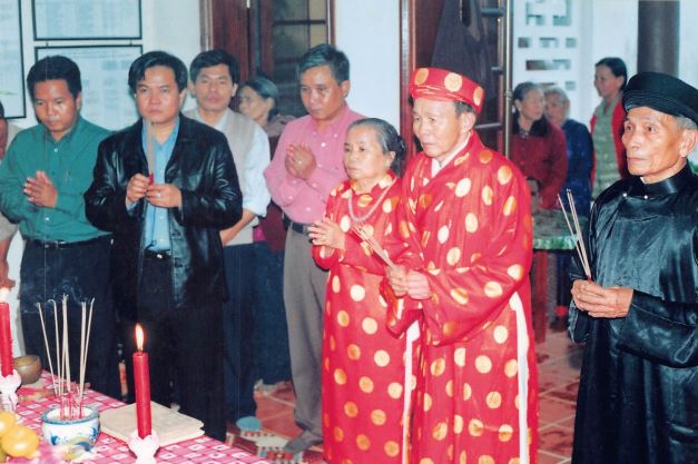 Con cháu làm lễ xin rước ông bà qua nhà thờ tộc