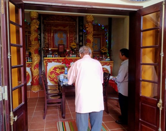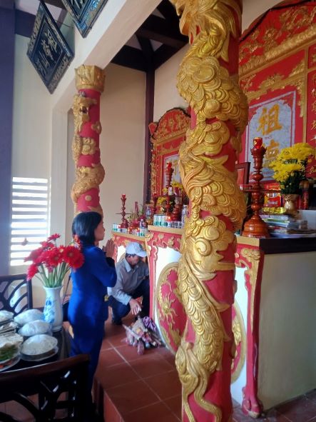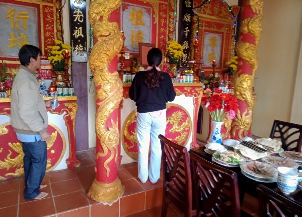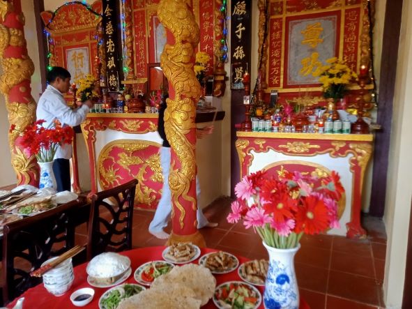 Bàn thờ ông bà được sửa soạn đầy đủ, trang nghiêm.