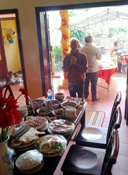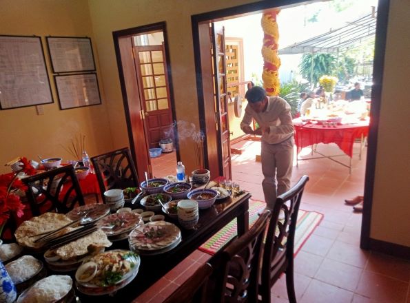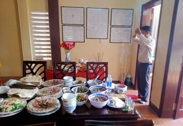 Năm nay lễ Chạp mả diễn ra vào ngày thứ sáu trong tuần, nên một số con cháu trong họ còn đi học, đi làm không về tham dự được. Tuy vậy lễ cúng được con cháu trong tộc họ chuẩn bị chu đáo, với đầy đủ lễ phẩm cúng dâng ông bà và hai mâm cỗ chay và mặn với đầy đủ các món ăn mang đậm hương vị quê hương.
