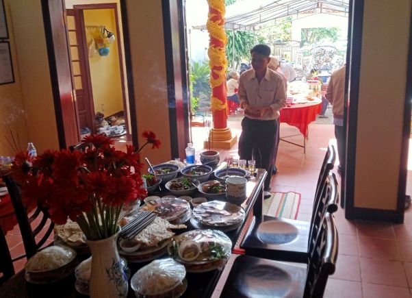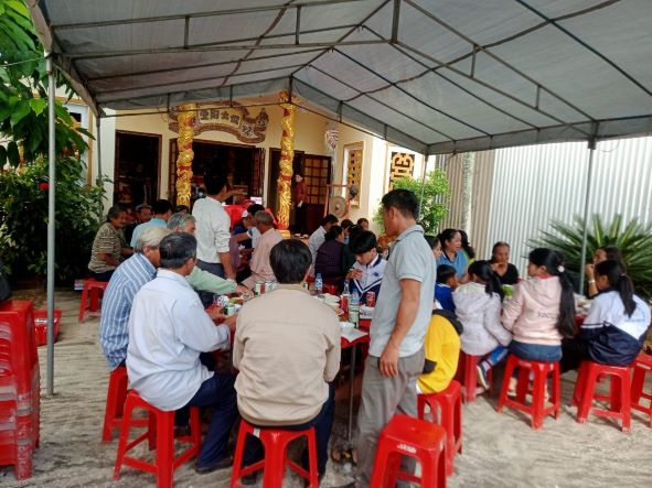 Bà con tham dự bữa tiệc sau lễ cúng